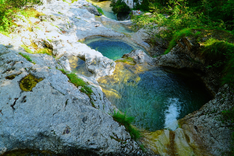 Nonostante la brevità, l’escursione regala un concentrato di emozioni visive. L’acqua del torrente Brenton, scendendo dalla montagna, ha scavato queste conche nella roccia calcarea con movimenti spiraliformi, creando pozze profonde e perfettamente levigate. Ogni cadino è diverso: cambia la forma, cambia la profondità, cambia il colore.